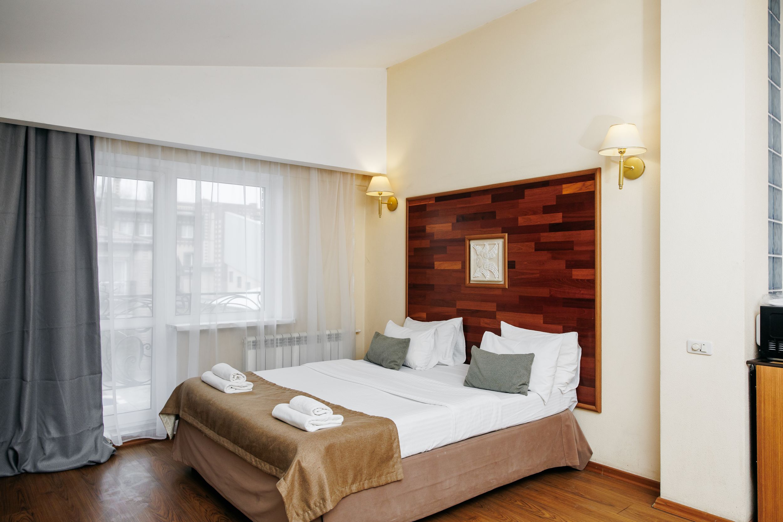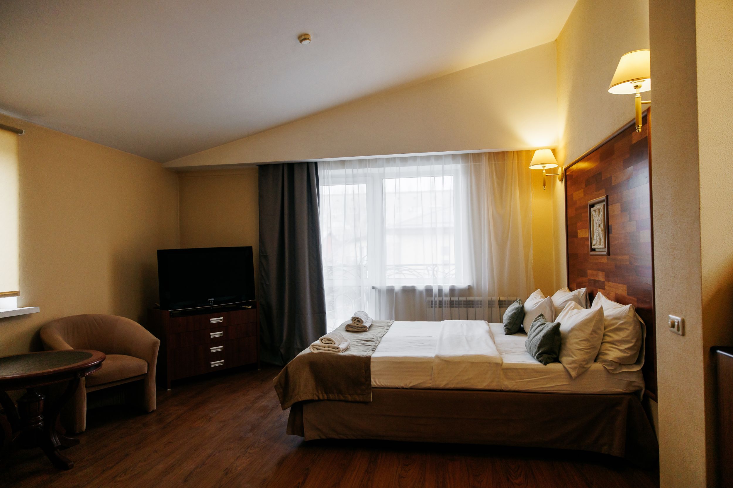 Просторный двухкомнатный номер площадью 63 м2 -самый удобный вариант для длительного проживания семьи в гостиницах Таганрога. В номере есть всё для комфортного проживания в гостинице Таганрога. Отдых в Таганроге или деловая поездка — вы всегда будете чувствовать себя как дома в этой гостинице Таганрога. Соедините посещение Таганрога, море, отдых.